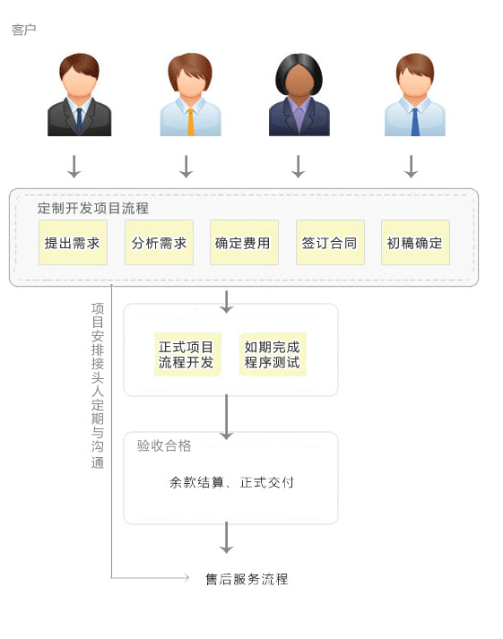 客戶簽發(fā)《模板驗(yàn)收合格書》后,將所有項(xiàng)目文件遞交客戶;或應(yīng)客戶要求,將項(xiàng)目直接上傳至客戶服務(wù)器上。至此,項(xiàng)目建設(shè)過(guò)程全部結(jié)束??蛻羧缧韫緸槠溥M(jìn)行項(xiàng)目建設(shè)后的日常更新和維護(hù)工作,需另外與公司簽訂《項(xiàng)目更新維護(hù)協(xié)議》。
